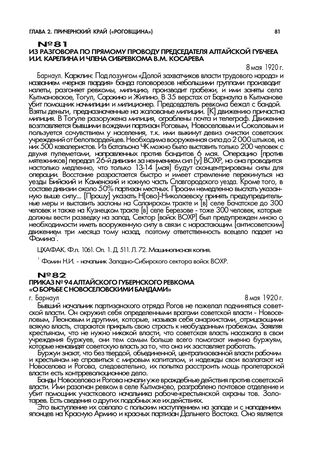 Приказ № 94 Алтайского губернского ревкома «О борьбе с новоселовскими бандами». г. Барнаул. 8 мая 1920 г. // Опубликовано: Алтайский коммунист. Барнаул. 9 мая 1920 г.