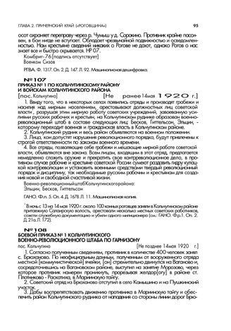 Приказ № 1 по Кольчугинскому району и войскам Кольчугинского района. [пос. Кольчугино]. Не ранее 14 мая 1920 г. // ГАНО. Ф.п. 5. Оп. 4. Д. 1678. Л. 11. Машинописная копия.