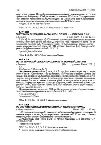 Из оперативной сводки Томского губернского военкомата. г. Ново-Николаевск. 27 мая 1920 г., 12 час // ГАТО. Ф.р. 521. Оп. 1. Д. 54. Л. 85. Машинописная копия.