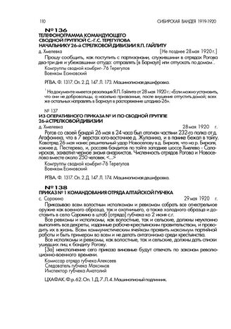 Из оперативного приказа № 11 по сводной группе 26-й стрелковой дивизии. д. Хмелевка. 28 мая 1920 г. // РГВА. Ф. 1317. Оп. 2. Д. 147. Л. 174. Машинописная дешифровка.