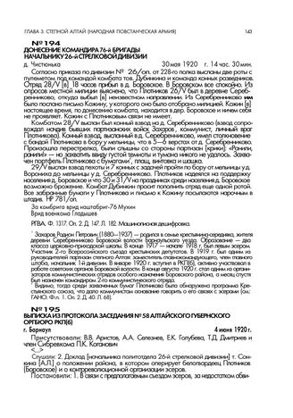 Донесение командира 76-й бригады начальнику 26-й стрелковой дивизии. д. Чистюнька. 30 мая 1920 г., 14 час. 30 мин // РГВА. Ф. 1317. Оп. 2. Д. 147. Л. 182. Машинописная дешифровка.