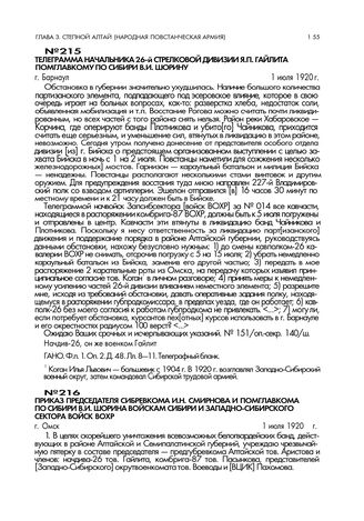 Приказ председателя Сибревкома И.Н. Смирнова и Помглавкома по Сибири В.И. Шорина войскам Сибири и Западно-Сибирского сектора войск ВОХР. г. Омск. 1 июля 1920 г. // РГВА. Ф. 17590. Оп. 1. Д. 55. Л. 30. Машинописная копия.