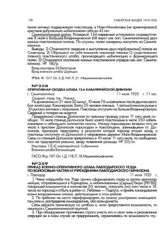 Оперативная сводка штаба 13-й кавалерийской дивизии. г. Семипалатинск. 11 июля 1920 г., 11 час // ГАСО. Ф.р. 197. Оп. 1. Д. 118. Л. 18. Машинописная копия.