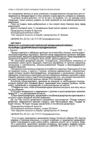 Приказ № 6 Алтайской губернской чрезвычайной пятерки по борьбе с дезертирством и бандитизмом. г. Барнаул. 17 июля 1920 г. // ЦХАФАК. Ф.п. 22. Оп. 1. Д. 17. Л. 51 .Типографский оттиск.