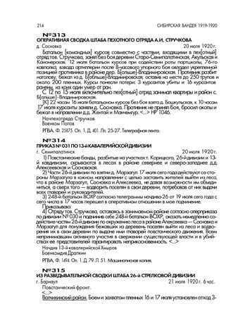 Оперативный приказ № 031 по 13-й кавалерийской дивизии. г. Семипалатинск. 20 июля 1920 г. // РГВА. Ф. 1494. Оп. 1. Д. 79. Л. 51. Машинописная копия.