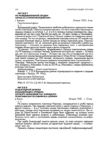 Из разведывательной сводки штаба 26-й стрелковой дивизии. г. Барнаул. 24 июля 1920 г., 6 час // РГВА. Ф. 1317. Оп. 2. Д. 940. Л. 46. Машинописный подлинник.