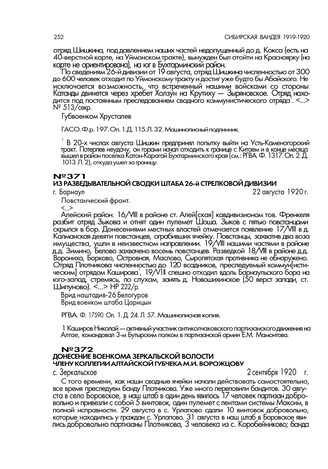 Из разведывательной сводки штаба 26-й стрелковой дивизии. г. Барнаул. 22 августа 1920 г. // РГВА. Ф. 17590. Оп. 1. Д. 24. Л. 57. Машинописная копия.