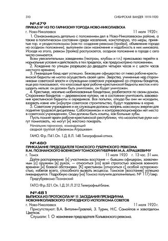 Выписка из протокола № 11 заседания президиума Ново-Николаевского горуездного исполкома советов. г. Ново-Николаевск. 11 июля 1920 г.