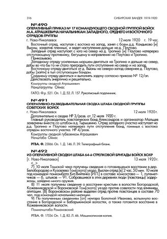 Оперативно-разведывательная сводка штаба сводной группы советских войск. г. Ново-Николаевск. 12 июля 1920 г.