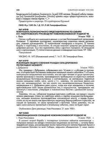 Телеграмма полномочного представителя ВЧК по Сибири И.П. Павлуновского руководству Ново-Николаевской уездной ЧК. г. Омск. 14 июля 1920 г.