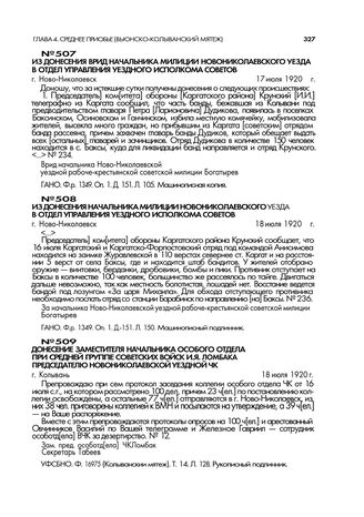 Из донесения начальника милиции Ново-Николаевского уезда в отдел управления уездного исполкома советов. г. Ново-Николаевск. 18 июля 1920 г. // ГАНО. Ф.р. 1349. Оп. 1. Д. 151. Л. 150. Машинописный подлинник.