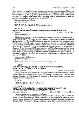 Из разведывательной сводки штаба 26-й стрелковой дивизии. г. Барнаул. 20 июля 1920 г., 6 час // РГВА. Ф. 1317. Оп. 2. Д. 940. Л. 37. Машинописный подлинник.