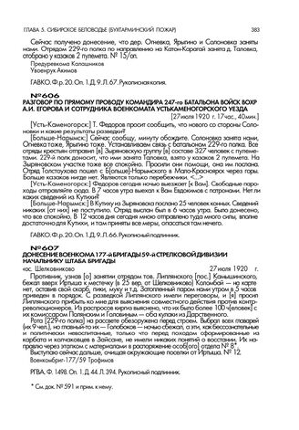 Донесение военкома 177-й бригады 59-й стрелковой дивизии начальнику штаба бригады. пос. Шелковниково. 27 июля 1920 г. // РГВА. Ф. 1498. Оп. 1. Д. 44. Л. 394. Рукописный подлинник.