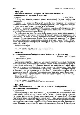 Донесение военкома 234-го полка З.Н. Пинцова командиру и военкому 78-й бригады 26-й стрелковой дивизии. с. Онгудай. 28 июля 1920 г. // РГВА. Ф. 1320. Оп. 1. Д. 16. Л. 13. Машинописная копия.