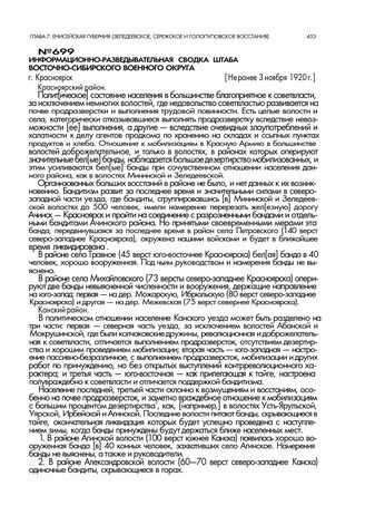 Информационно-разведывательная сводка штаба Восточно-Сибирского военного округа. г. Красноярск. Не ранее 3 ноября 1920 г. // РГВА. Ф. 17534. Оп. 1. Д. 80. Л. 58. Машинописная копия.