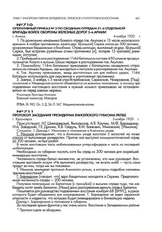 Протокол заседания президиума Енисейского губкома РКП(б). г. Красноярск. 5 ноября 1920 г. // ГАНО. Ф.п. 1. Оп. 1. Д. 125. Л. 68. Машинописная копия.