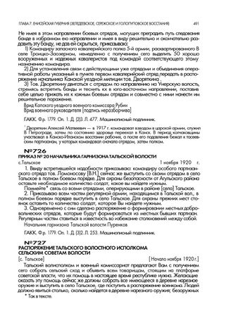 Распоряжение Тальского волостного исполкома сельским советам волости. [с.Тальское]. Начало ноября 1920 г. // ГАКК. Ф.р. 1779. Оп. 1. Д. (3)2. Л. 246. Машинописный подлинник.