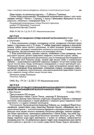 Приказ № 2 по сводному отряду южной части Канского уезда. д. Голопуповка. 16 ноября 1920 г. // ГАКК. Ф.р. 1779. Оп. 1. Д. (3)2. Л. 109. Машинописная копия.