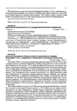 Доклад командира отряда особого назначения Д. Лебедева командиру 378-го отдельного стрелкового батальона войск ВНУС. с. Оса. Начало ноября 1920 г. // РГВА. Ф. 17613. Оп. 1. Д. 44. Л. 104. Машинописная копия.