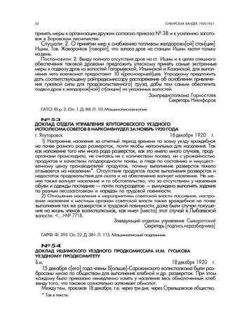 Доклад отдела управления Ялуторовского уездного исполкома советов в Наркомвнудел за ноябрь 1920 года. г. Ялуторовск. 18 декабря 1920 г. // ГАРФ. Ф. 393. Оп. 22. Д. 381. Л. 115. Машинописный подлинник.