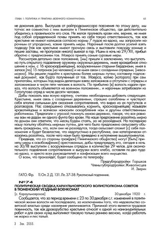 Политическая сводка Караульноярского волисполкома советов в Тюменский уездный военкомат. [с. Караульноярское]. 30 декабря 1920 г. // ГАТО. Ф. р. 8. Оп. 2. Д. 18. Л. 31. Рукописный подлинник.