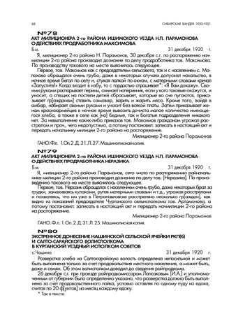 Экстренное донесение Нашинской сельской ячейки РКП(б) и Салто-Сарайского волисполкома в Курганский уездный исполком советов. с.Чашино. 31 декабря 1920 г. // ГАКО. Ф. р. 461. Оп. 1. Д. 59. Л. 8. Рукописный подлинник