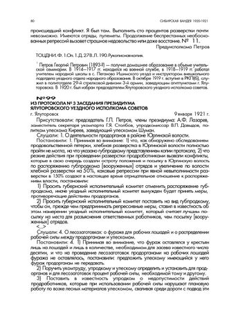 Из протокола № 3 заседания президиума Ялуторовского уездного исполкома советов. г. Ялуторовск. 9 января 1921 г. // ГАТО. Ф. р. 2. Оп. 1. Д. 99. Лл. 3, 4. Машинописная копия.