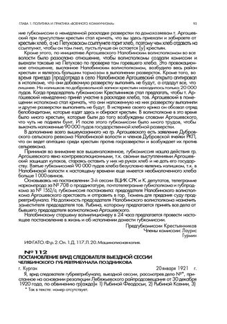 Постановление врид следователя выездной сессии Челябинского губревтрибунала Поздникова. г. Курган. 20января 1921 г. // ГАКО. Ф. р.7. Оп. 2. Д. 11. Л. 15. Рукописная копия.