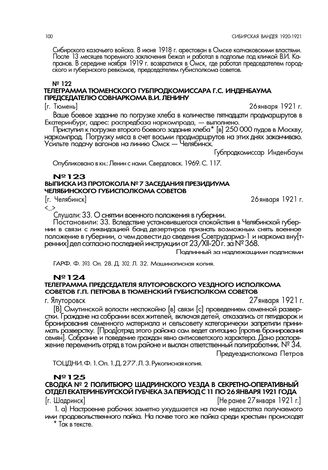 Сводка № 2 политбюро Шадринского уезда в секретно-оперативный отдел Екатеринбургской губчека за период с 11 по 26 января 1921 года. [г. Шадринск]. Не ранее 27января 1921 г. // ГАОПДКО. Ф. 2. Оп. 1. Д. 117. Лл. 62, 63. Машинописная копия.