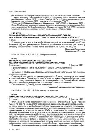 Выписка из протокола № 15 заседания Акмолинского уездно-городского комитета РКП(б). [г. Акмолинск]. 9 февраля 1921 г. // ГАНО. Ф.п. 1. Оп. 1. Д. 215. Л. 6а. Машинописная копия.
