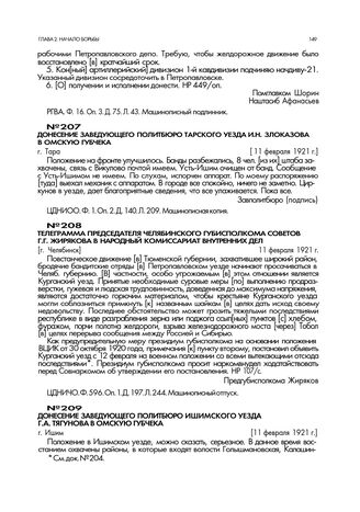 Донесение заведующего политбюро Тарского уезда И.Н. Злоказова в Омскую губчека. г. Тара. 11 февраля 1921 г. // ЦДНИОО. Ф. 1. Оп. 2. Д. 140. Л. 209. Машинописная копия.