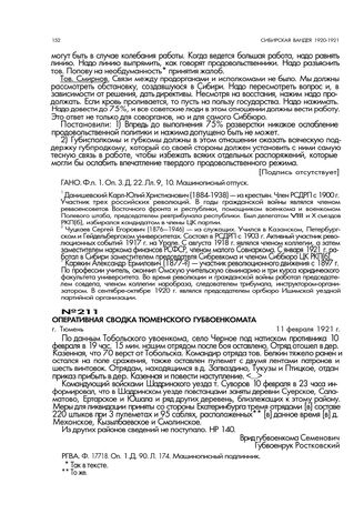 Главная Серия «Россия. XX век. Документы» Сибирская Вандея Сибирская Вандея Т. 2. 1920-1921 Оперативная сводка Тюменского губвоенкомата. г. Тюмень. 11 февраля ...