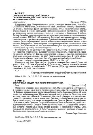 Сводка Екатеринбургской губчека об оперативных действиях повстанцев за 11 февраля 1921 года. г. Екатеринбург. 12 февраля 1921 г. // РГВА. Ф. 25892. Оп. 3. Д. 72. Л. 28. Машинописный подлинник.
