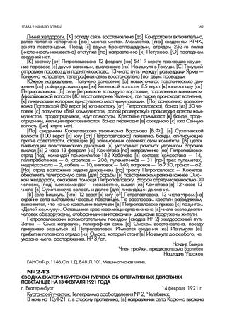 Сводка Екатеринбургской губчека об оперативных действиях повстанцев на 13 февраля 1921 года. г. Екатеринбург. 14 февраля 1921 г.
