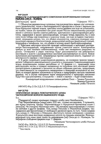 Приказ № 11 командующего советскими вооруженными силами района Омск - Тюмень. 15 февраля 1921 г.