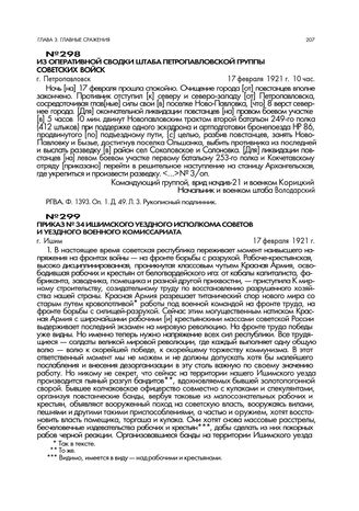 Из оперативной сводки штаба Петропавловской группы советских войск. г. Петропавловск. 17 февраля 1921 г. 10 час // РГВА. Ф. 1393. Оп. 1. Д. 49. Л. 3. Рукописный подлинник.