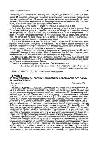 Из разведывательной сводки штаба Приуральского военного округа на 16 февраля 1921 г. г. Екатеринбург. 17 февраля 1921 г.