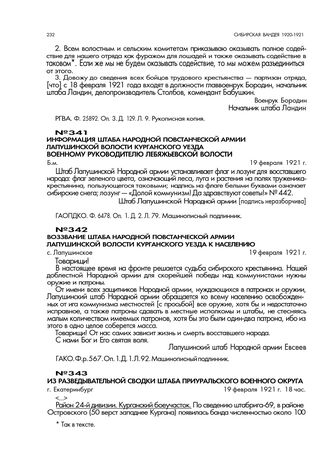 Из разведывательной сводки штаба Приуральского военного округа. г. Екатеринбург. 19 февраля 1921 г. 18 час // РГВА. Ф. 25892. Оп. 3. Д. 126. Л. 66. Машинописная копия.