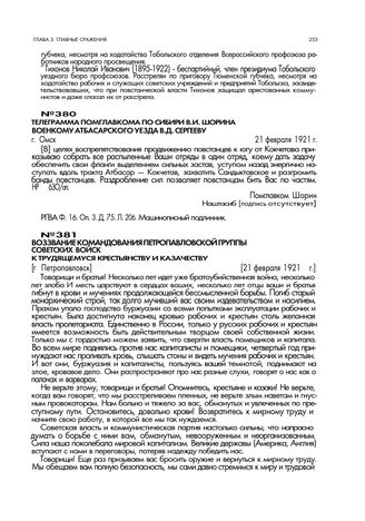Телеграмма помглавкома по Сибири В.И. Шорина военкому Атбасарского уезда В.Д. Сергееву. г. Омск. 21 февраля 1921 г. // РГВА. Ф. 16. Оп. 3. Д. 75. Л. 206. Машинописный подлинник.