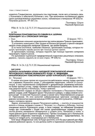Телеграмма помглавкома по Сибири В.И. Шорина командиру 85-й стрелковой бригады. г. Омск. 22 февраля 1921 г. // РГВА. Ф. 16. Оп. 3. Д. 75. Л. 220. Машинописный подлинник.