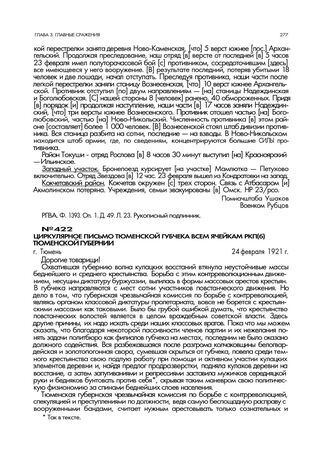 Циркулярное письмо Тюменской губчека всем ячейкам РКП(б) Тюменской губернии. г. Тюмень. 24 февраля 1921 г. // ТОЦДНИ. Ф. 4048. Оп. 1. Д. 121. Л. 48. Типографский оттиск.