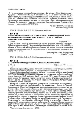 Из оперативной сводки штаба помглавкома по Сибири. [г. Омск]. 26 февраля 1921 г. 6 час // РГВА. Ф. 16. Оп. 3. Д. 102. Л. 43. Машинописная копия.