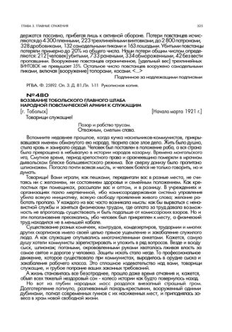 Воззвание Тобольского главного штаба народной повстанческой армии к служащим. [г. Тобольск]. Начало марта 1921 г. // ЦДООСО. Ф. 41. Оп. 1. Д. 142. Л. 31. Типографский оттиск.