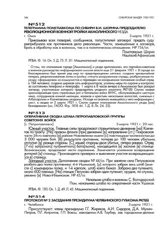 Главная Серия «Россия. XX век. Документы» Сибирская Вандея Сибирская Вандея Т. 2. 1920-1921 Телеграмма помглавкома по Сибири В.И. Шорина председателю революцио...