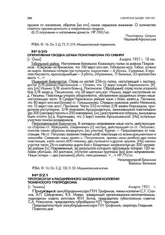 Оперативная сводка штаба помглавкома по Сибири. [г. Омск]. 4 марта 1921 г. 18 час // РГВА. Ф. 16. Оп. 3. Д. 102. Л. 50. Машинописная копия.