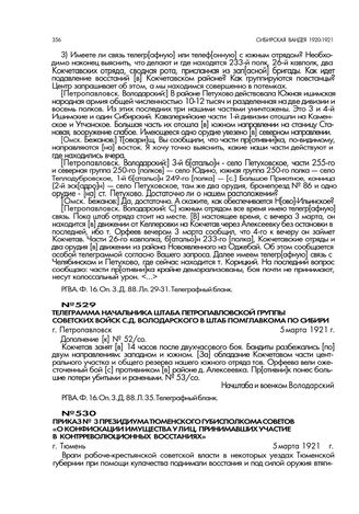 Приказ № 3 президиума Тюменского губисполкома советов «О конфискации имущества улиц, принимавших участие в контрреволюционных восстаниях». г. Тюмень. 5 марта 1921 г. // ГАТО. Ф. р. 198. Оп. 1. Д. 33. Л. 76. Типографский оттиск.