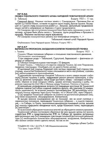 Выписка из протокола заседания коллегии Тюменской губчека. г. Тюмень. 8 марта 1921 г. // ТОЦДНИ. Ф. 1. Оп. 1. Д. 276. Л. 148. Машинописная копия.
