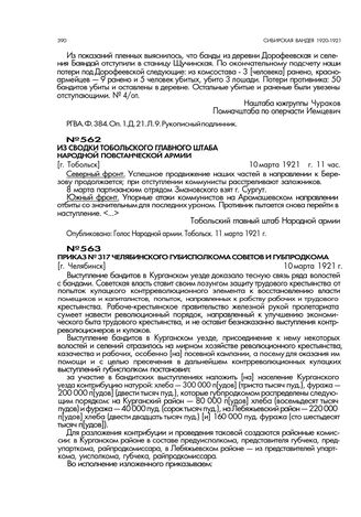 Из сводки Тобольского главного штаба народной повстанческой армии. [г. Тобольск]. 10 марта 1921 г. 11 час // Опубликовано: Голос Народной армии. Тобольск. 11 марта 1921 г.