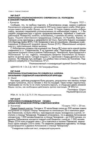 Телеграмма помглавкома по Сибири В.И. Шорина начальнику отдельной кавалерийской бригады. [г. Омск]. 10 марта 1921 г. // РГВА. Ф. 16. Оп. 3. Д. 75. Л. 394. Машинописный подлинник.