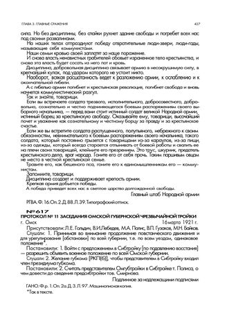 Протокол № 11 заседания Омской губернской чрезвычайной тройки. г. Омск. 16 марта 1921 г. // ГАНО. Ф. р. 1. Оп. 2а. Д. 3. Л. 97. Машинописная копия.
